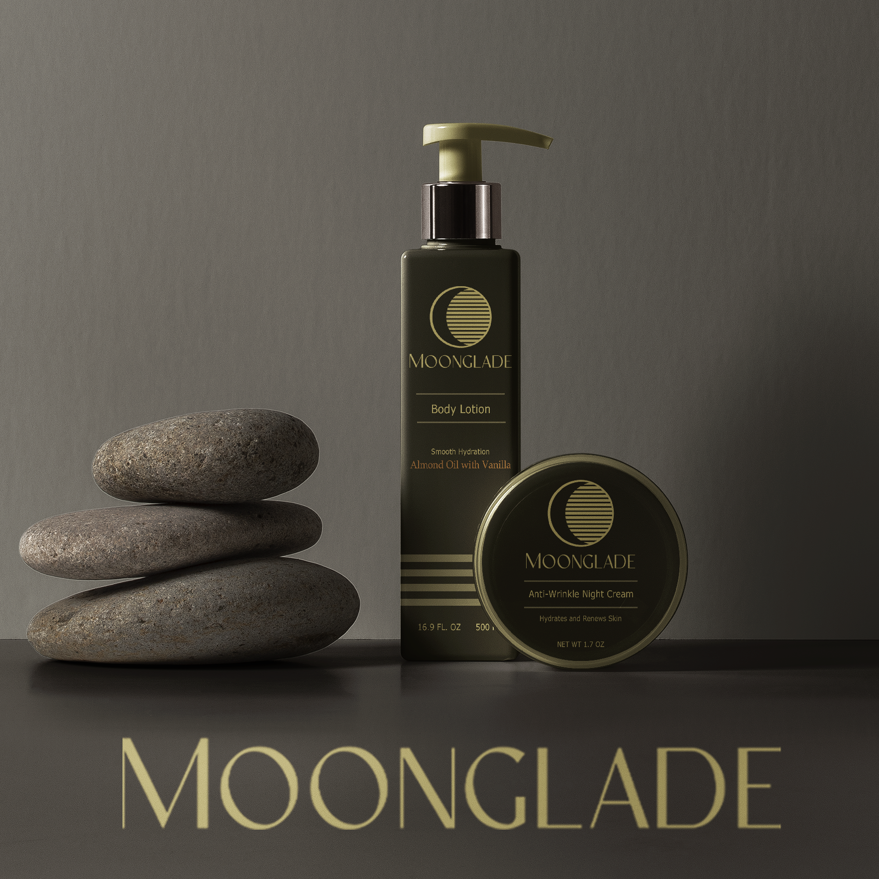 Moonglade is a line of high quality skincare products. I created an abstract brand mark and paired it with an elegant type face to give this identity a sense of luxury.