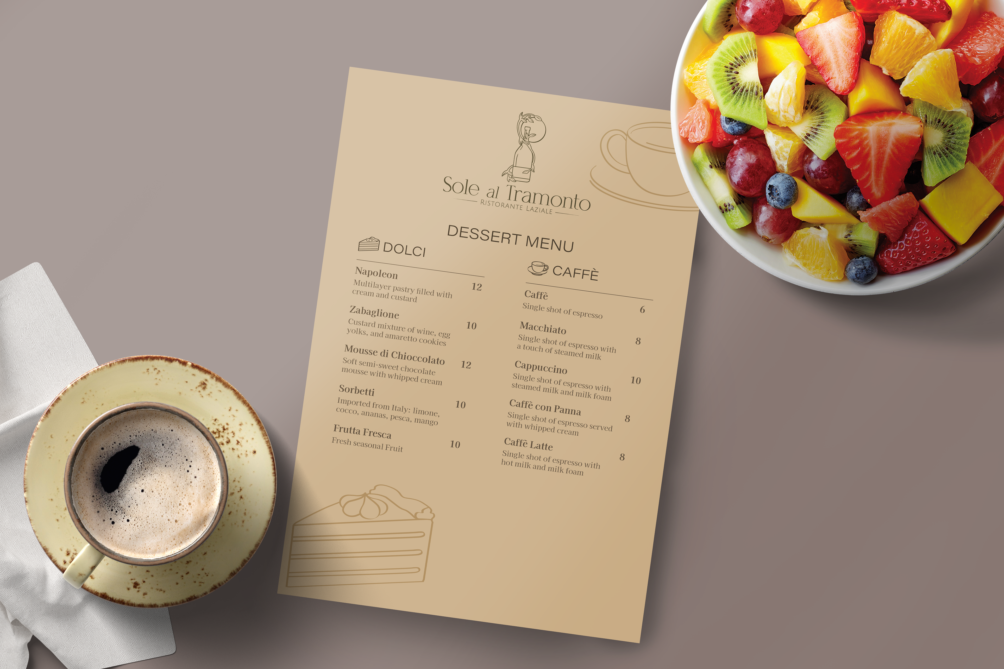 Welcome to Sole al Tramonto, an upscale Italian restaurant focusing on Lazio cuisine.